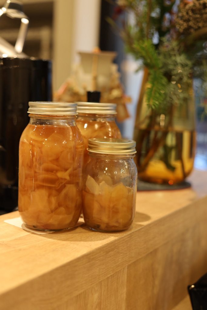 We offer a selection of gentle, body-friendly drinks such as organic mint green tea and enzyme koji Japanese black tea.
